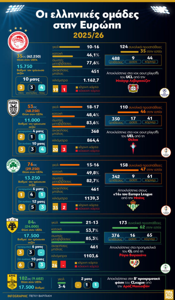 Αρχική Αθλητισμός Ποδόσφαιο Η ακτινογραφία από την παρουσία των ελληνικών ομάδων στην Ευρώπη ΑθλητισμόςΠοδόσφαιο Η ακτινογραφία από την παρουσία των ελληνικών ομάδων στην Ευρώπη Από pinakio - 28 Απριλίου, 2026 0 29 FacebookTwitterPinterestWhatsApp Πηγή: Αθηναϊκό Πρακτορείο ΠΑΡΟΜΟΙΑ ΑΡΘΡΑΠΕΡΙΣΣΟΤΕΡΑ ΑΠΟ ΤΟΝ ΔΗΜΙΟΥΡΓΟ Netflix Ντέιβιντ Μπέκαμ: Για το γκολ στην Εθνική Ελλάδας μίλησε στο ντοκιμαντέρ του Netflix Ποδόσφαιο Χριστούγεννα στο μέτωπο με…ποδόσφαιρο: Ανακωχή παίζοντας μπάλα Ποδόσφαιο Οι ομάδες με τα περισσότερα μέλη στον κόσμο ΑΦΗΣΤΕ ΜΙΑ ΑΠΑΝΤΗΣΗ Ακύρωση απάντησης εισάγετε το σχόλιό σας! παρακαλώ εισάγετε το όνομά σας εδώ έχετε εισάγει εσφαλμένη διεύθυνση ηλεκτρονικού ταχυδρομείου! παρακαλώ εισάγετε εδώ την ηλεκτρονική σας διεύθυνση αποθηκεύστε το όνομα, το ηλεκτρονικό ταχυδρομείο και τον ιστότοπό μου σε αυτό το πρόγραμμα περιήγησης για την επόμενη φορά που θα σχολιάσω. Δ - Advertisement - ΠΡΟΣΦΑΤΑ ΑΡΘΡΑ Πού θα ταξιδέψουν οι Έλληνες την Πρωτομαγιά Γης Λεύκωμα pinakio - 28 Απριλίου, 2026 0 «Minions and Monsters»: Η μεγάλη επιστροφή των Minions στη μεγάλη οθόνη Κινηματογράφος pinakio - 28 Απριλίου, 2026 0 Η φιλόλογος που “απογειώνει” τις μπουγάτσες Ρεπορτάζ pinakio - 18 Απριλίου, 2026 0 Ανακάλυψη-ορόσημο στην Ιθάκη: Εντοπίστηκε αρχαίο ιερό αφιερωμένο στον Οδυσσέα Ιστορικές προσωπικότητες pinakio - 13 Απριλίου, 2026 0 Χριστός Ανέστη! Ρεπορτάζ pinakio - 11 Απριλίου, 2026 0